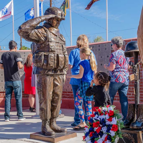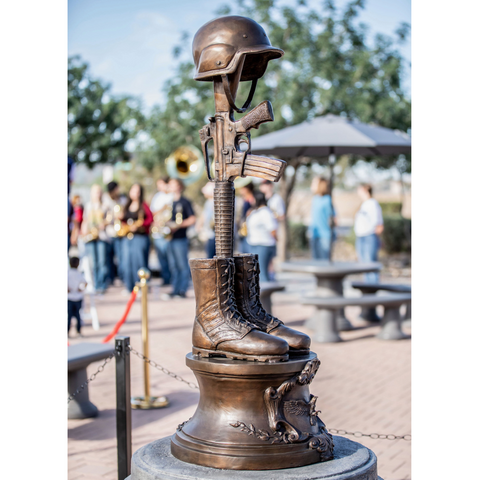 This lost-wax bronze memorial plaque pays tributes to the firefighters lost during the collapse of The World Trade Center. Our bronze plaque accompanies a steel beam recovered from The Twin Towers to commemorate the people lost. Our bronze memorial plaques and bronze patriotic statues are tributes to firefighters, police officers, military soldiers and veterans.