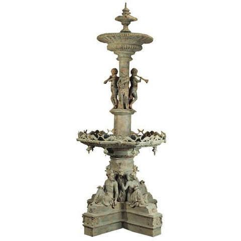 Our Bronze Cherub Two-Tier Garden Fountain was created with the traditional lost-wax casting method, an ancient practice that emphasizes even the finest of details, and ensures that the fountain will last for centuries. The piece is finished in a breathtaking marbleized verdigris patina.