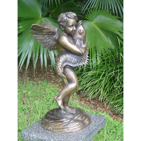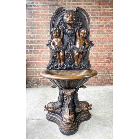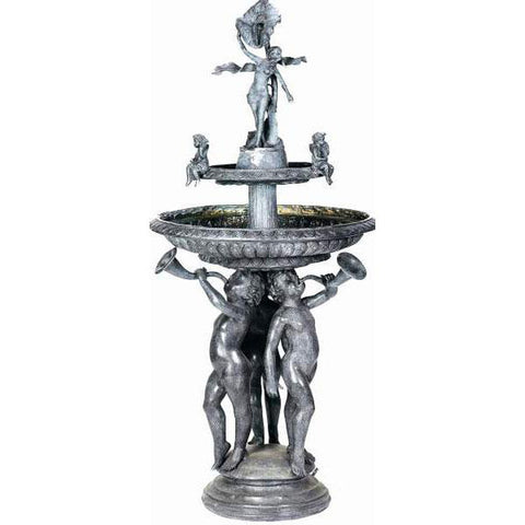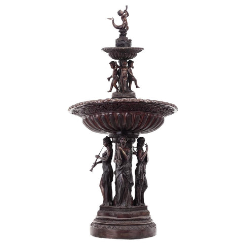 This traditional cherub bronze fountain will bring classic beauty to your garden or entryway. Our classic bronze fountain garden statue depicts a happy boy cherub pouring water from his vase into an intricately-sculpted shell pool. Not only is this piece spectacular to behold, it's a self-contained fountain. Water flows from the vase and down into the upper tier, before flowing down once more into the lower tier and recirculating back to the top.